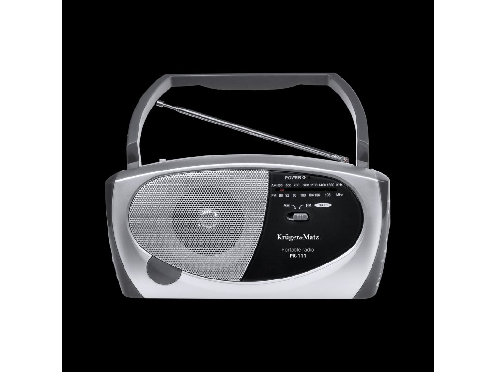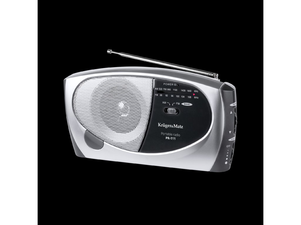 Radio Kruger&Matz PR-111 je malé přenosné rádio, které se skvěle hodí kamkoliv. Díky možnosti napájení jak střídavým proudem, tak bateriemi, bude zařízení ideální nejen pro domácí použití, ale bez problémů umožní relaxaci při oblíbeném rozhlasovém pořadu i venku.