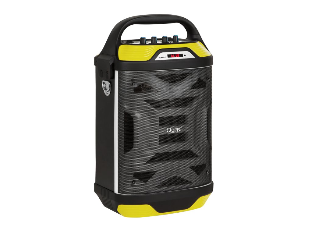Přenosná aktivní reprosoustava Quer s MP3, Bluetooth, FM rádiem a funkcí karaoke se ideálně hodí pro společenská setkání. Baterie s kapacitou 1800 mAh zajišťuje, že každá venkovní akce získá nový charakter. Reproduktor zpříjemní chvíle po více než 2,5 hodiny bez nutnosti nabíjení. Zařízení si pamatuje 60 rádiových stanic a oblíbenou hudbu lze přehrávat nejen bezdrátově pomocí Bluetooth, ale také z USB paměti nebo microSD karet. Součástí sady je také mikrofon a dálkové ovládání. Sada je malá a lehká, což znamená, že její přenos nebude dělat žádné potíže. Výstupní výkon: 20 W + 5 W
