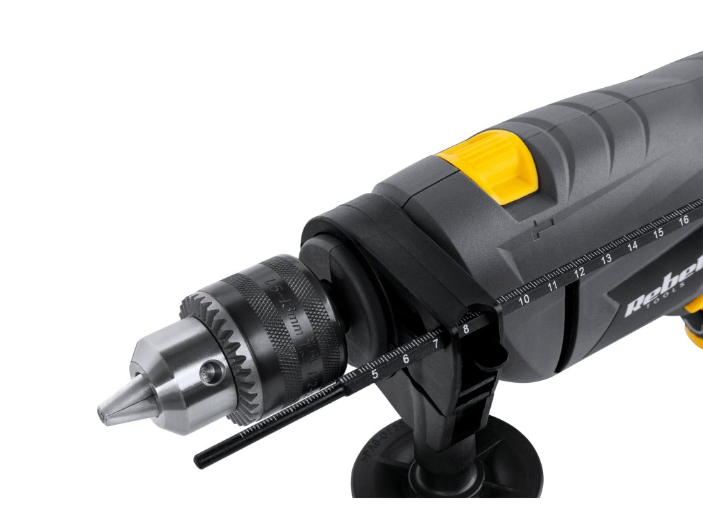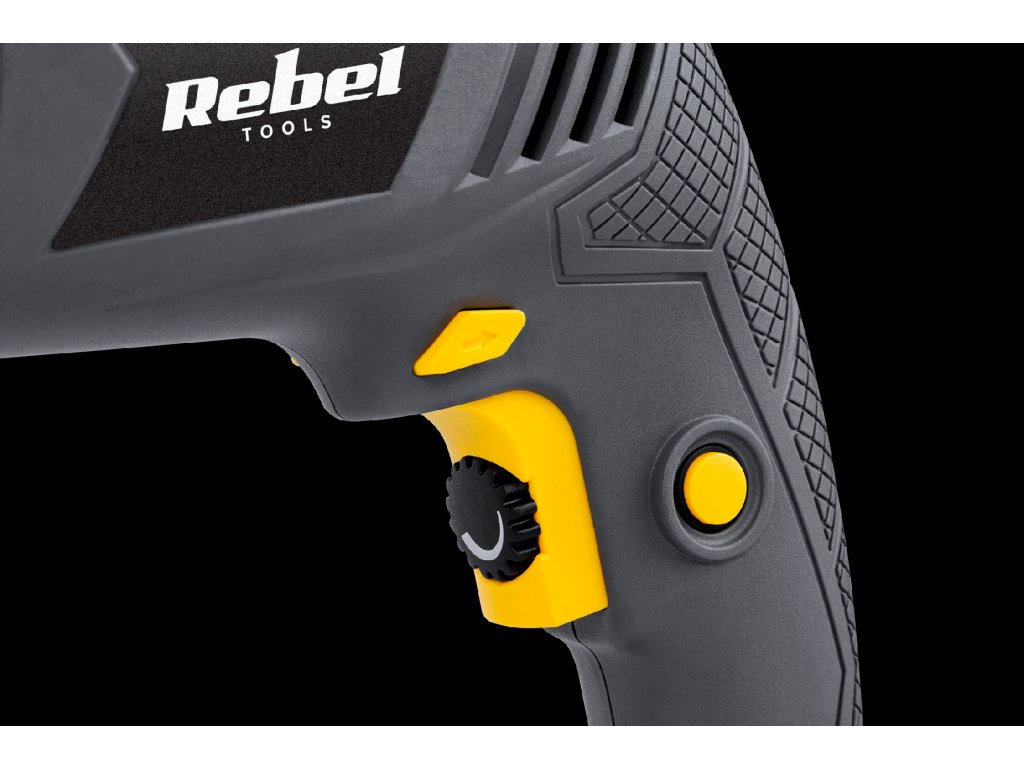 Pokud máte rádi samostatné rekonstrukční práce ve svém domě, rozhodně se musíte vybavit příklepovou vrtačkou ze série Rebel Tools. Tento nástroj může pracovat ve dvou režimech: s příklepem nebo bez, což znamená, že bez větší námahy provrtáte otvory nejen do dřeva a kovu, ale také do cihly či betonu. Pracující s výkonem 600 W vrtačka má regulaci otáček – maximálně 3100 ot./min, díky čemuž snadno a s obrovskou přesností provrtáte otvory v různorodých materiálech.
