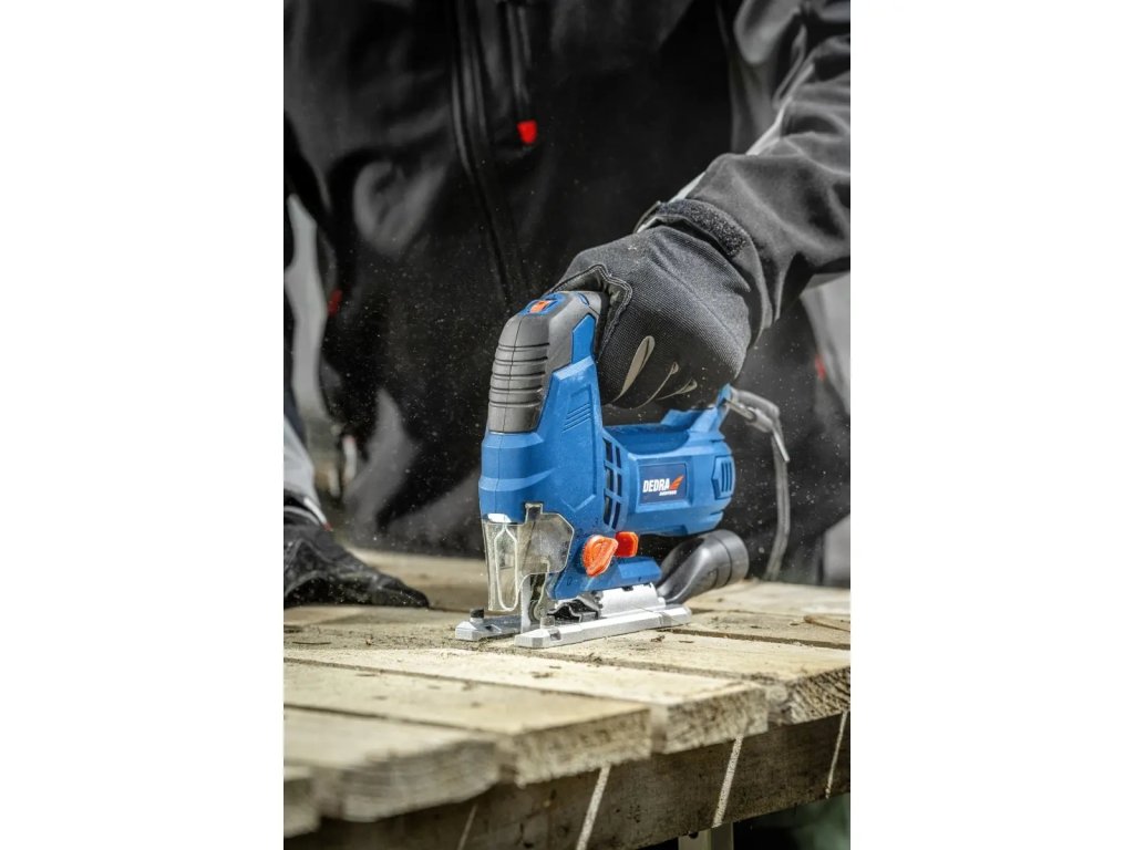 Délka zdvihu pilového listu na úrovni 24 mm zaručuje velmi vysokou efektivitu zařízení při práci s tvrdými a silnými materiály. Přímočará pila DED7966 je vybavena třístupňovou funkcí podřezávání. Výměna pilových listů probíhá rychle a efektivně bez použití jakýchkoliv nástrojů, a základnu pily můžeme naklonit oboustranně v rozmezí 0-45°, což nám umožňuje dosáhnout řezání pod úhlem.