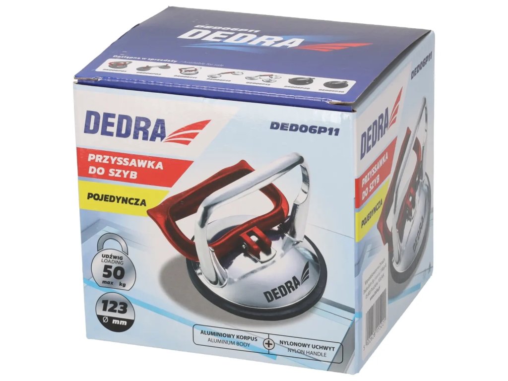Maximální nosnost přísavky na zasklívání DED06P11 je 50 kg, takže je nejvhodnější pro přepravu panelů, velkorozměrových skel.