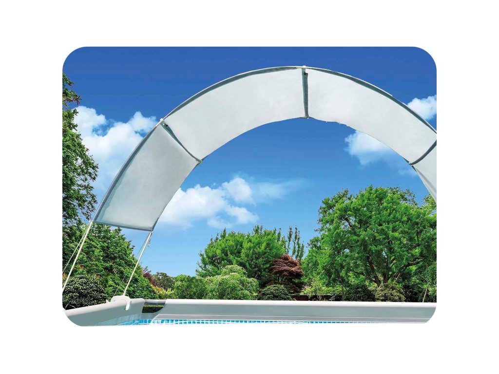 Stříška je vhodná pro všechny obdélníkové bazény Prism Frame, Oval a Ultra XTR Rectangular (kromě 9,75 x 4,88 x 1,32 m) a kulaté bazény s průměrem 3,05 m a 3,66 m.