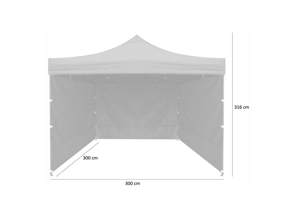 Ochrana před nadměrným sluncem a deštěm je zajištěna. Tři stěny chrání před silným větrem. Stan se dokonale hodí během grilovaček, venkovních oslav a pikniků v zahradě. Může také sloužit jako sklad při namontování dveří se zipem, dostupnými v nabídce. Skvěle se hodí i jako prodejní stan.