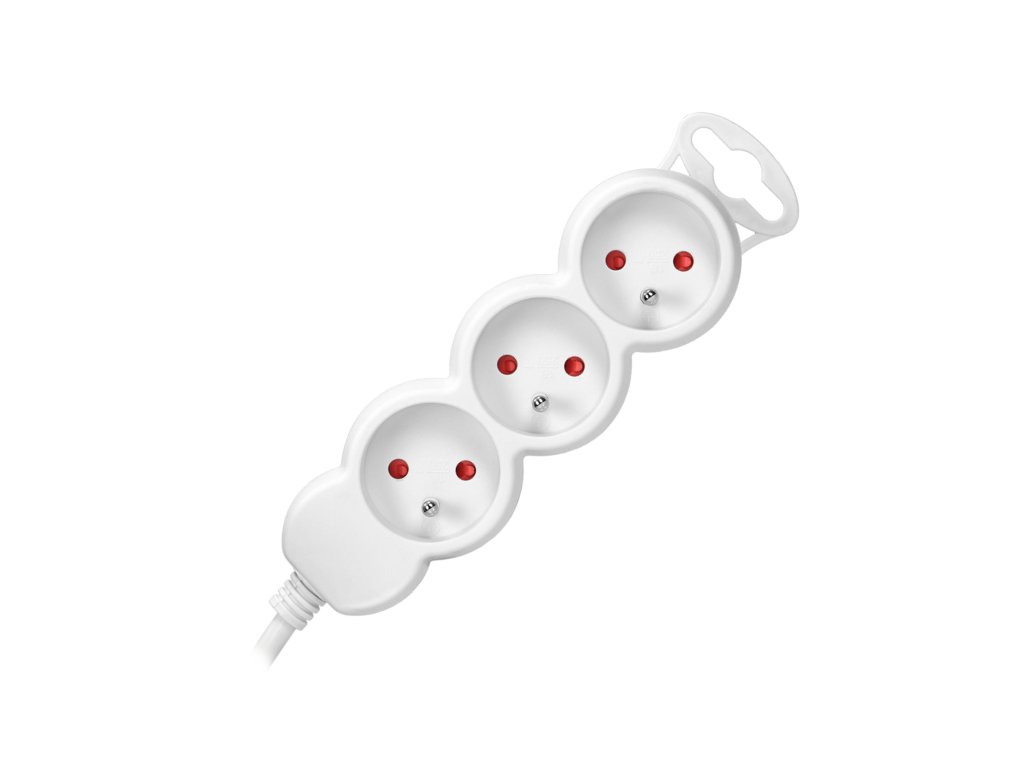 Naše prodlužovačka je navržena s ohledem na bezpečnost a pohodlí uživatele. Při instalacích, kde jsou zásuvky nedostatečně daleko, umožňuje připojení až tří zařízení. Bílé barevné provedení zaručuje, že se prodlužovačka hodí prakticky kamkoli, ať už je to vaše obývací pokoj, kuchyň nebo pracovna.
