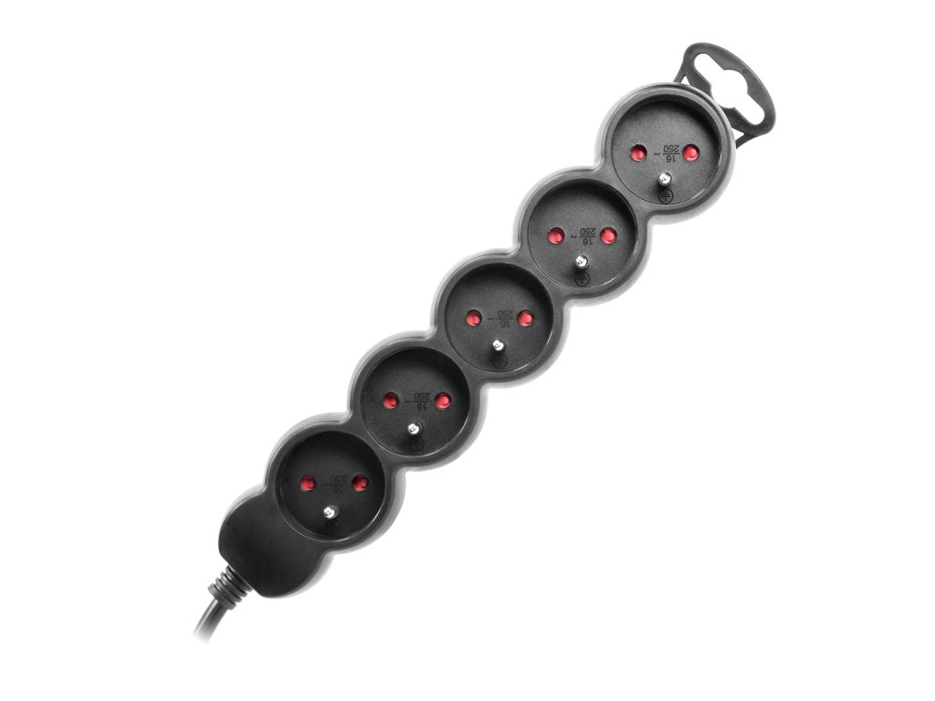 Prodlužovačka 3m, 5 zásuvek, černá, 16A