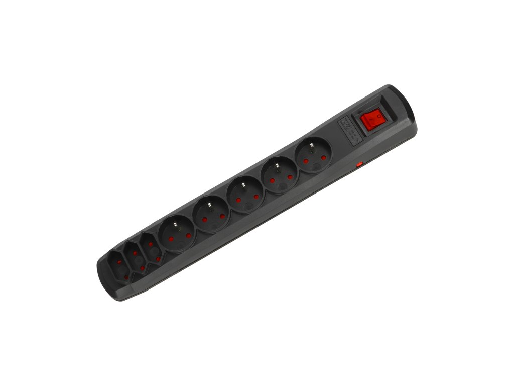 Prvek chránící před přepětím a rušením v napájecí síti. Má systém proti přepětí a proti zkratu, 5 zásuvek s ochranným kontaktem (10A/250V), 3 ploché zásuvky bez ochranného kontaktu (2,5A/250V), bezpečné, nevodivé, samozhášecí pouzdro, signalizaci provozu, zpožděnou automatickou pojistku, snadnou montáž k podkladu. Technické údaje: - jmenovité napětí: 230V, 50Hz - maximální zatížení: 10A (2300W) - jmenovitý proud: 10A - absorpce energie: 155J - reakční čas: <25ns - max. impulsní proud: 6000A (impuls 8/20µs)Prvek chránící před přepětím a rušením v napájecí síti. Má systém proti přepětí a proti zkratu, 5 zásuvek s ochranným kontaktem (10A/250V), 3 ploché zásuvky bez ochranného kontaktu (2,5A/250V), bezpečné, nevodivé, samozhášecí pouzdro, signalizaci provozu, zpožděnou automatickou pojistku, snadnou montáž k podkladu.