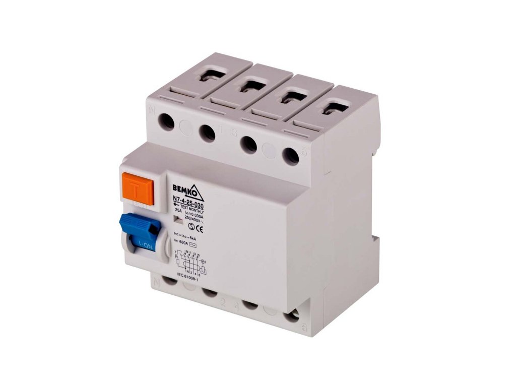 Proudový chránič 4P model N7-4 25A / 30mA BEMKOIm=500AInc=6000AIEC/EN61008-1