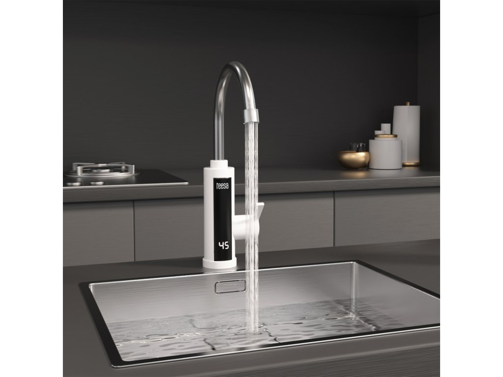 Průtokový ohřívač vody - bílá kuchyňská baterie