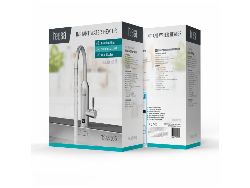 Celá konstrukce – jak topné těleso, tak kryt baterie Teesa je vyrobena z nerezové oceli 304, což zajišťuje odolnost proti korozi, vysoké teplotě a mechanickému poškození. Toto řešení je pro ty, kteří oceňují kvalitu, spolehlivost a moderní vzhled zařízení v kuchyni nebo koupelně.
