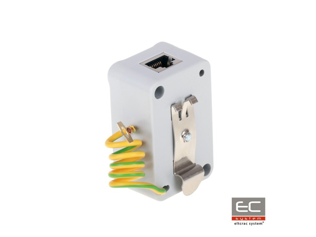 PTF-51-ECO/PoE/DIN je jednokanálová přepěťová ochrana série Economical montovaná na DIN lištu, určená na zabezpečení například průmyslových IP kamer, LAN switchů, routerů, přístupových bodů WiFi a dalších zařízení pracujících v síti Ethernet. Zařízení je kompatibilní se standardy 10Base-T a 100Base-T. Vynikající parametry přenosu dat jsou dosaženy díky použití laděných PCB desek a preciznímu vedení obvodů. Ochrana zaručuje účinnou ochranu zařízení a sítě LAN, jejíž prvky se nacházejí uvnitř budov. Profesionální řešení připojení chrání zařízení před nárůstem napětí na napájecích linkách PoE. Linky 4-5 a 7-8 jsou propojené, protože LAN Base-100T je používá výhradně na napájení PoE. PTF-51-ECO/PoE/DIN chrání obě skupiny napájecích párů před nárůstem napětí nad 58V a poškozením napájecích zdrojů koncových zařízení (např. IP kamery, switche). Uzemnění ochrany se provádí pomocí DIN lišty. K montáži zařízení na DIN lištu je nutné použít kovovou úchytku, kterou je PTF-51-ECO/PoE/DIN vybaveno.