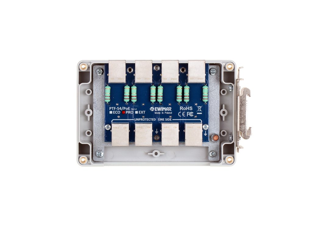 Skříňka je určena pro 4-kanálové moduly ochrany před přepětím v LAN síti, modely PTF-54 nebo PTU-54. Může být použita pro rozptýlenou infrast strukturu LAN v IP CCTV instalacích na zabezpečení přepěťové ochrany malých 4-portových switchů nebo na společnou ochranu čtyř IP kamer.