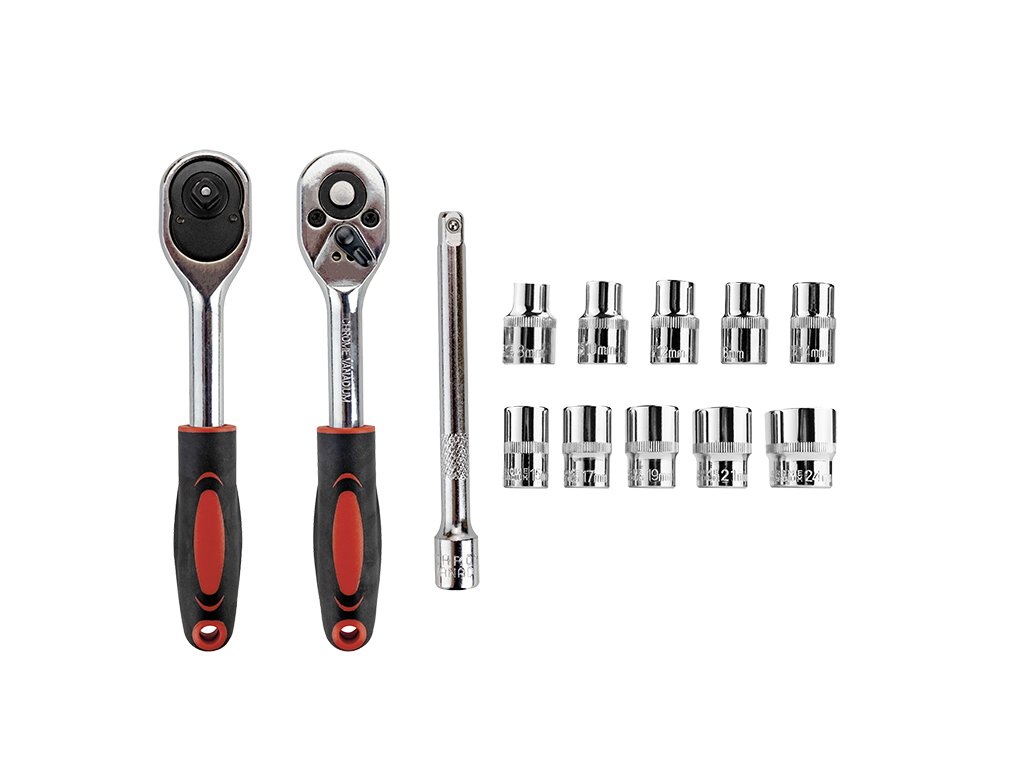 - 10 ks nástrčných klíčů ve velikostech: 8, 9, 10, 11, 12, 13, 14, 17, 19, 21 mm