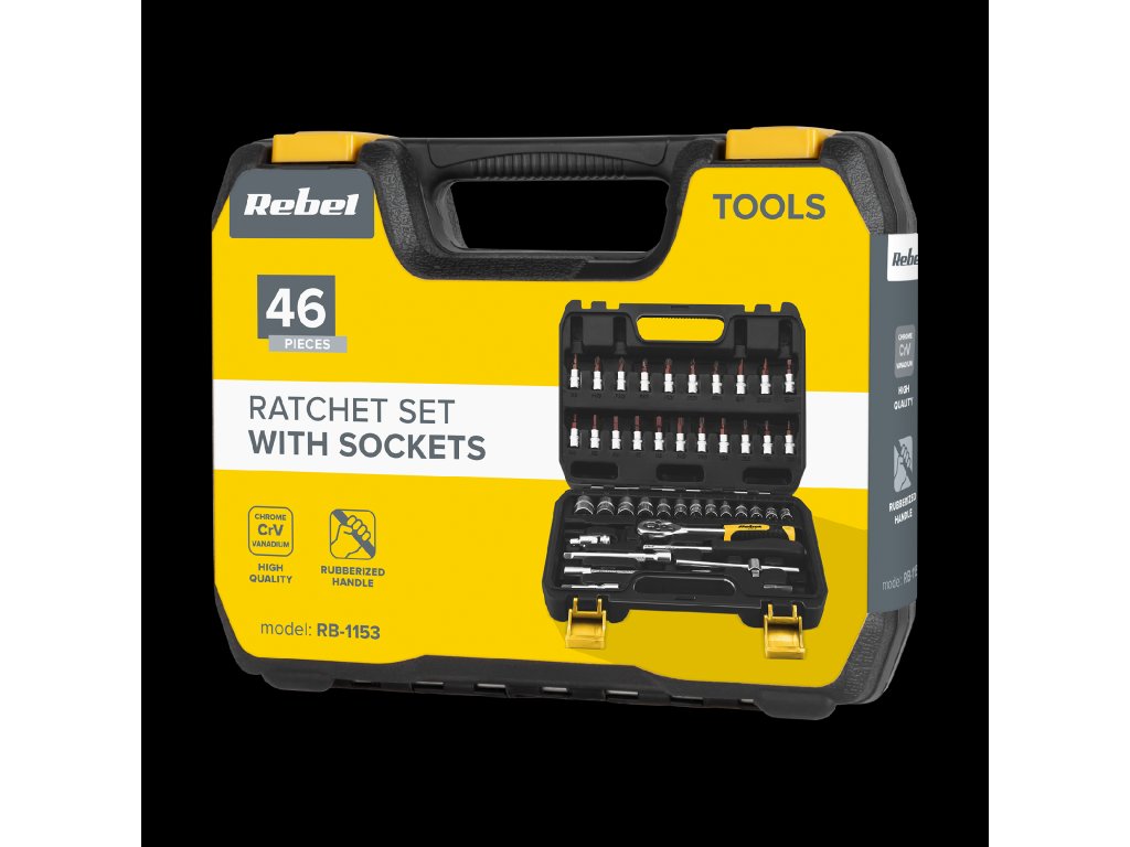Ráčnový klíč sada 46 prvků značky Rebel uspokojí potřeby jak profesionálů, tak i amatérských kutilů. Vyrobený z odolné chrom-vanadiové oceli, poskytuje spolehlivost a dlouhou životnost při používání.