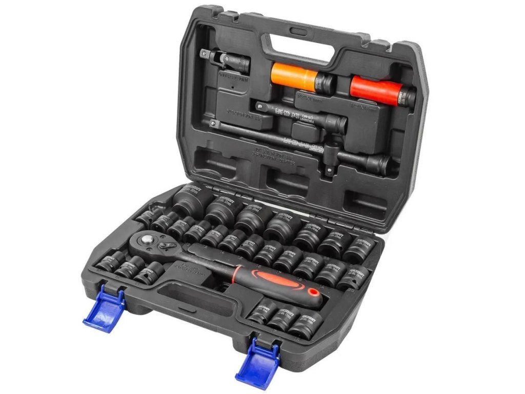 1/2" 6hran nárazové zásuvky: 8, 9, 10, 11, 12, 13, 14, 15, 16, 17, 18, 19, 20, 21, 22, 24, 27, 30, 32 mm.
