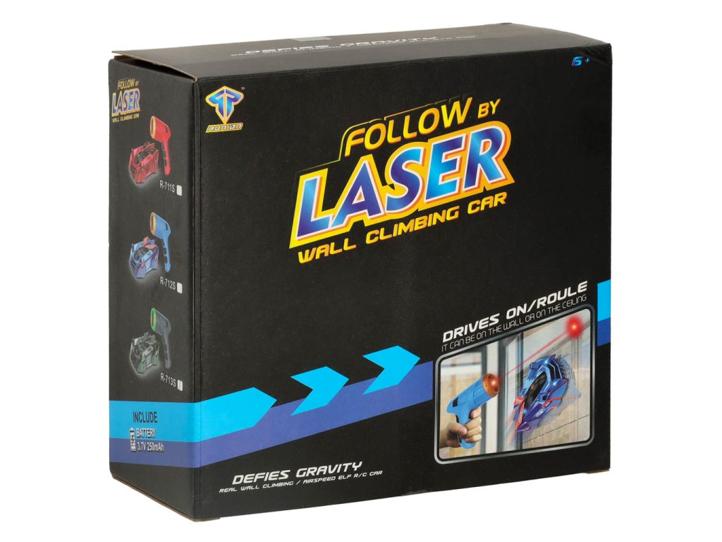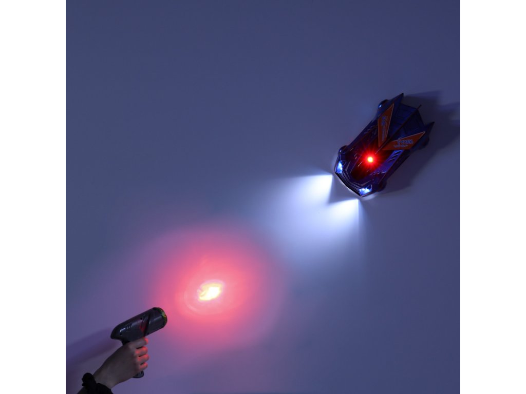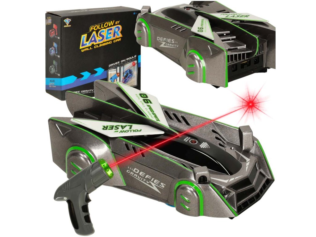 RC laserom riadené auto jazdiace po stene na laserovej šedi