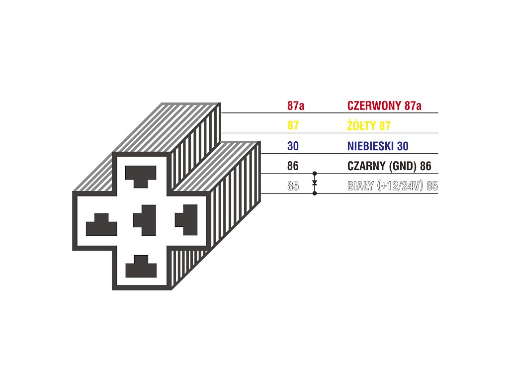 Zásuvka automobilového relé s vyvedenými vodiči. Určeno pro relé s kódy: 8630#, 0392#, 8635#TECHNICKÉ ÚDAJE: