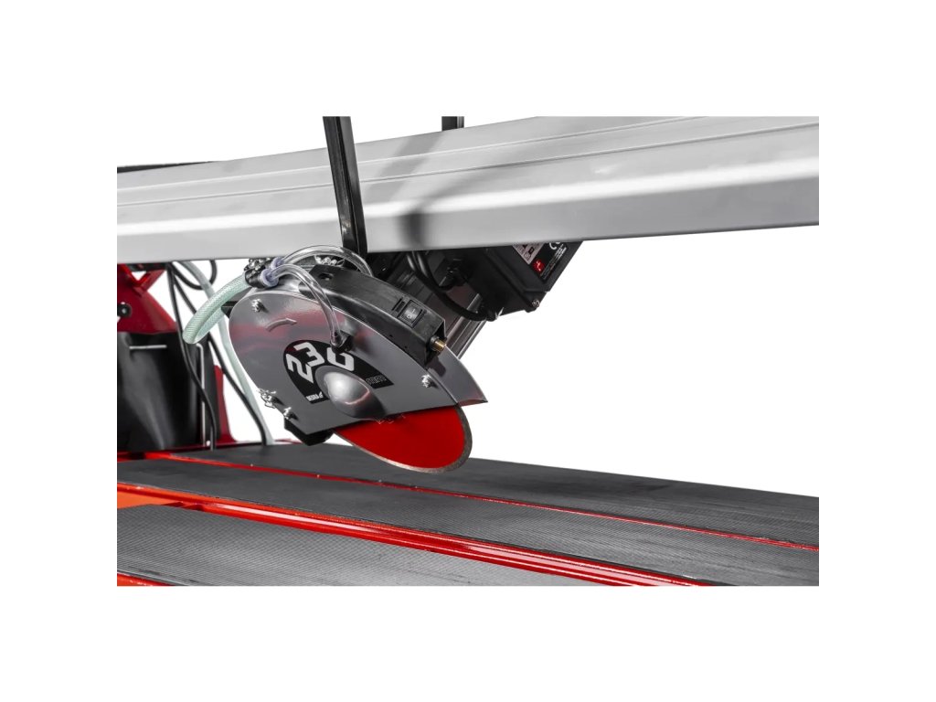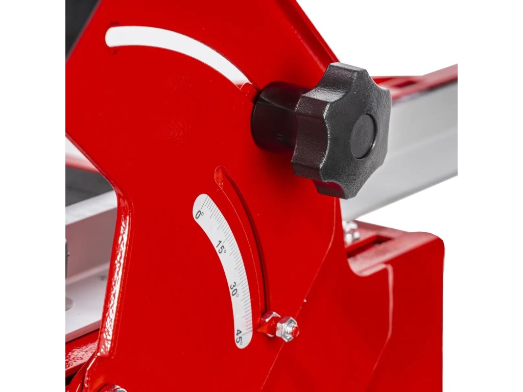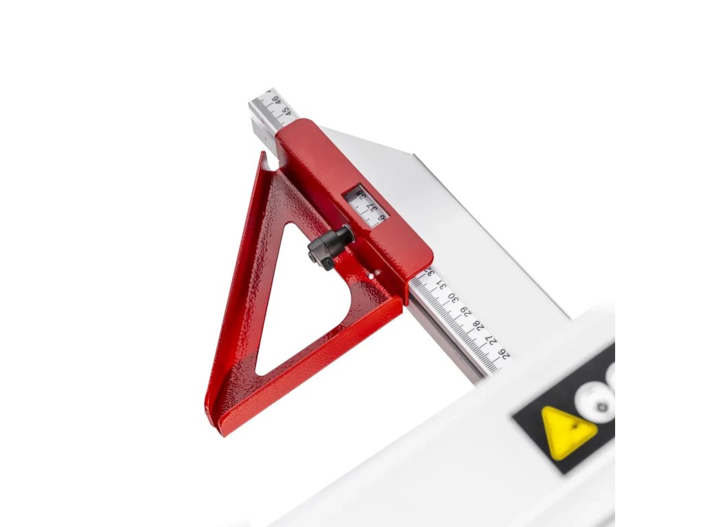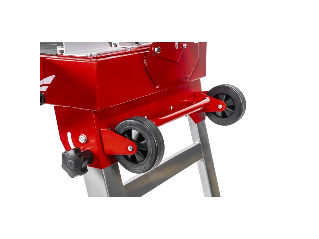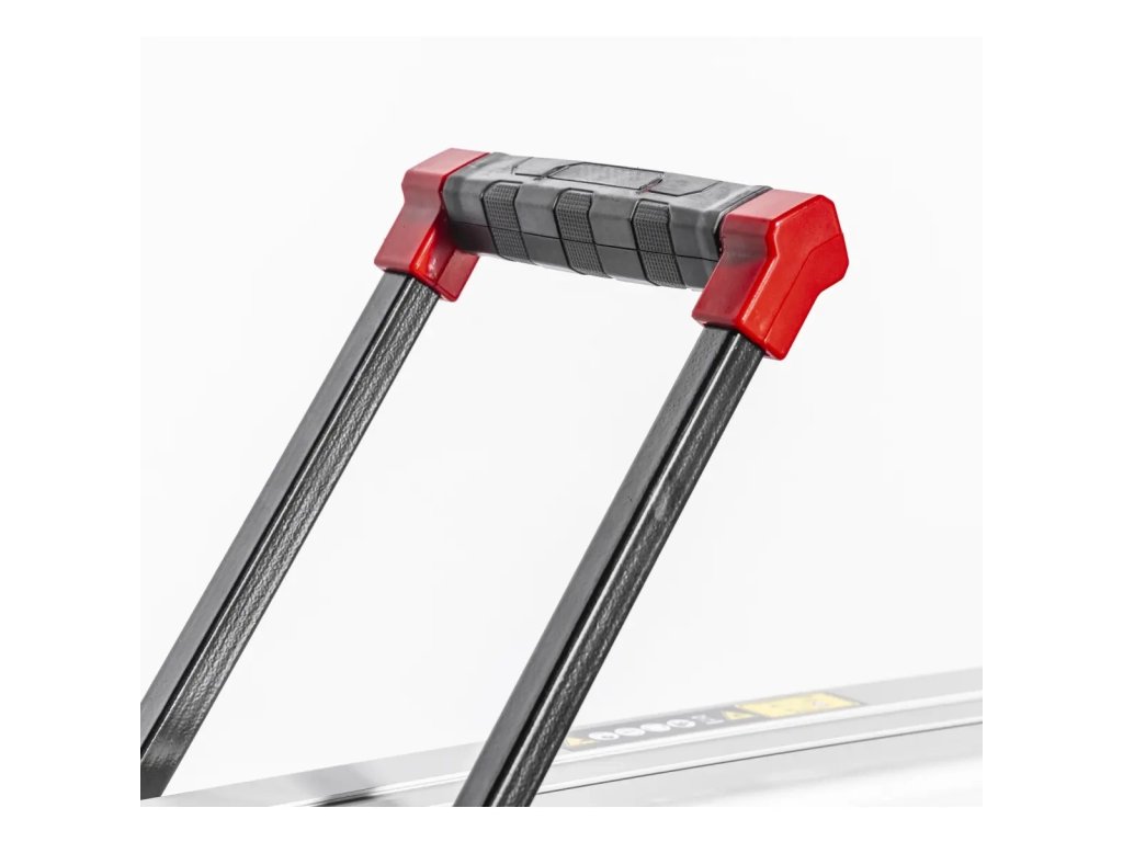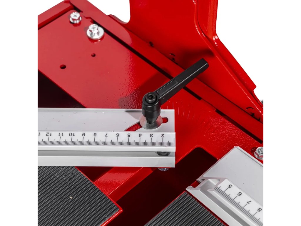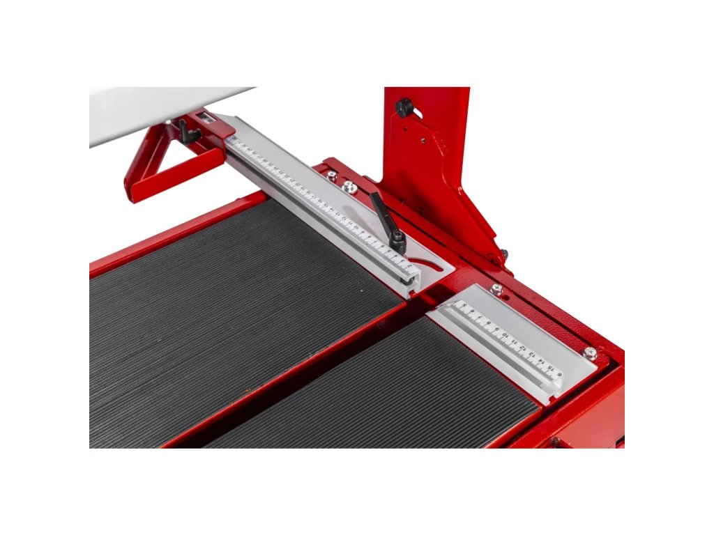 Součástí je pracovní stůl vyrobený z oceli o rozměrech 950x390mm, jehož pracovní plochu lze dále zvětšit rozložením dodatečné desky - to je podstatné usnadnění, zejména při práci s velkými deskami, kdy je potřebná další opora. Kromě toho byla deska pokryta vrstvou gumy, která zajišťuje vysokou přilnavost dlaždice k povrchu - díky tomu se materiál drží pevně, což usnadňuje přesné řezání.