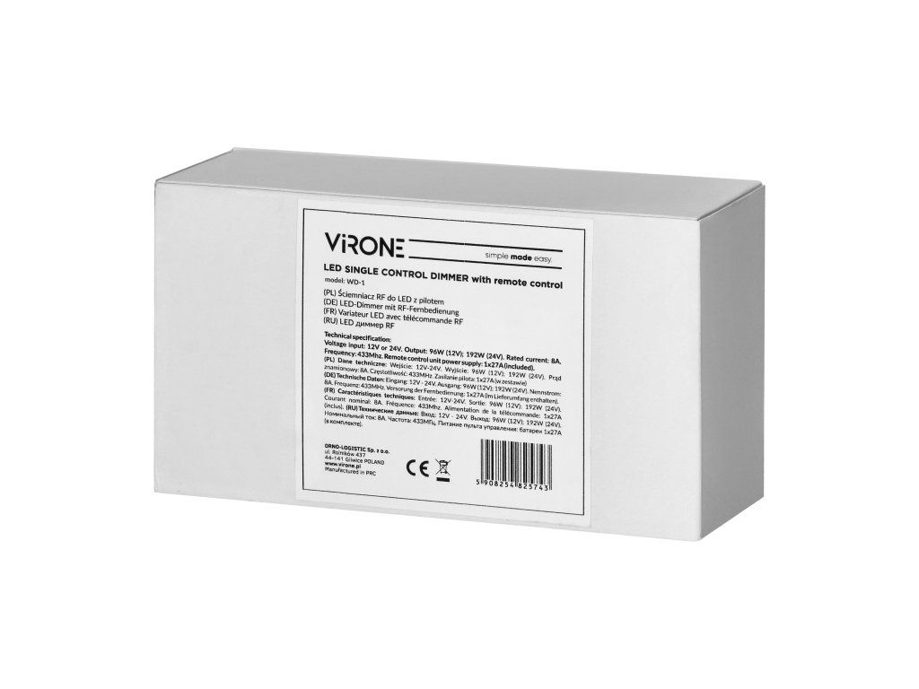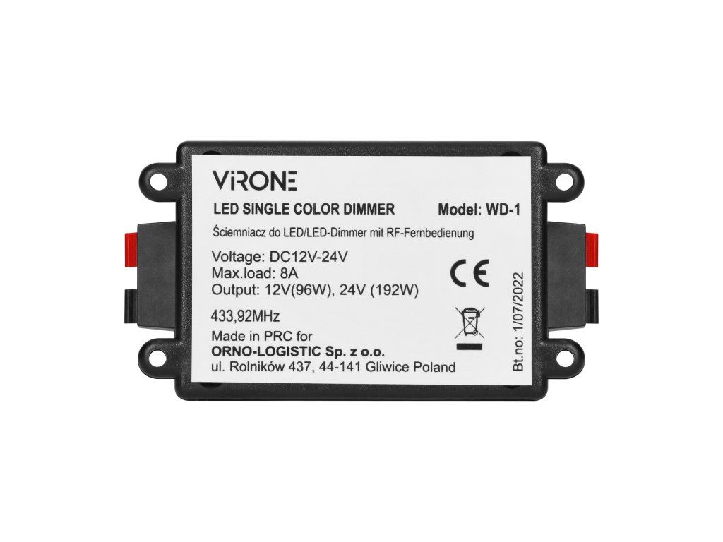 - Kompatibilita: RF LED stmívač 12-24V je navržen pro práci s LED pásy napětí 12 až 24V, čímž poskytuje širokou škálu použití pro různé typy LED osvětlení.