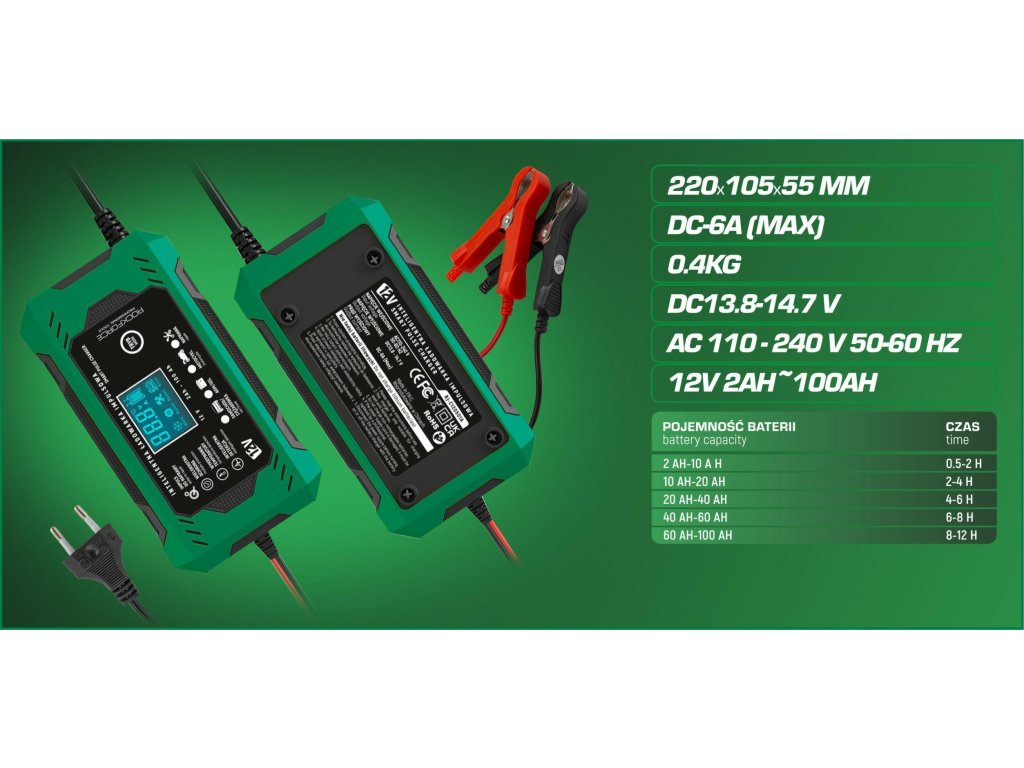 Nabíječka Rockforce 12V 6A je moderní, mikroprocesorová nabíječka nové generace, která zaručuje rychlé, bezpečné a plně automatické nabíjení 12V akumulátorů. Zařízení je navrženo pro profesionální dílny i jednotlivé uživatele, kteří oceňují spolehlivost, bezpečnost a maximální efektivitu. Díky inteligentní kontrole, početným ochranám a bohatým diagnostickým a regeneračním funkcím je nabíječka Rockforce mnohem více než jen obyčejná nabíječka – je to kompletní centrum údržby akumulátorů.