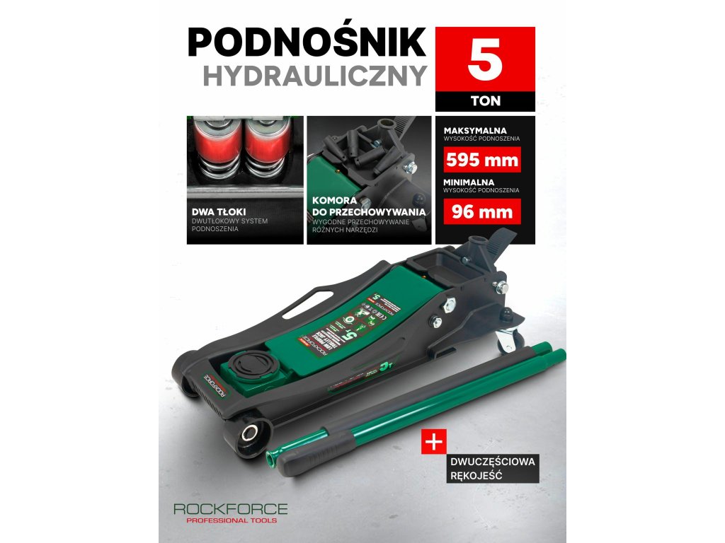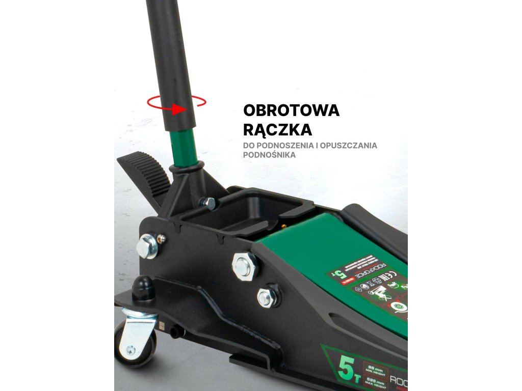 Hydraulický zvedák ROCKFORCE 5 tun je zařízení navržené pro ty nejnáročnější uživatele – jak profesionální mechaniky, tak řidiče, kteří ocení spolehlivost ve své garáži. Spojení pevné ocelové konstrukce, ergonomických řešení a promyšlené funkčnosti ho činí nenahraditelným nástrojem při všech druzích oprav a servisních prací na vozidlech.