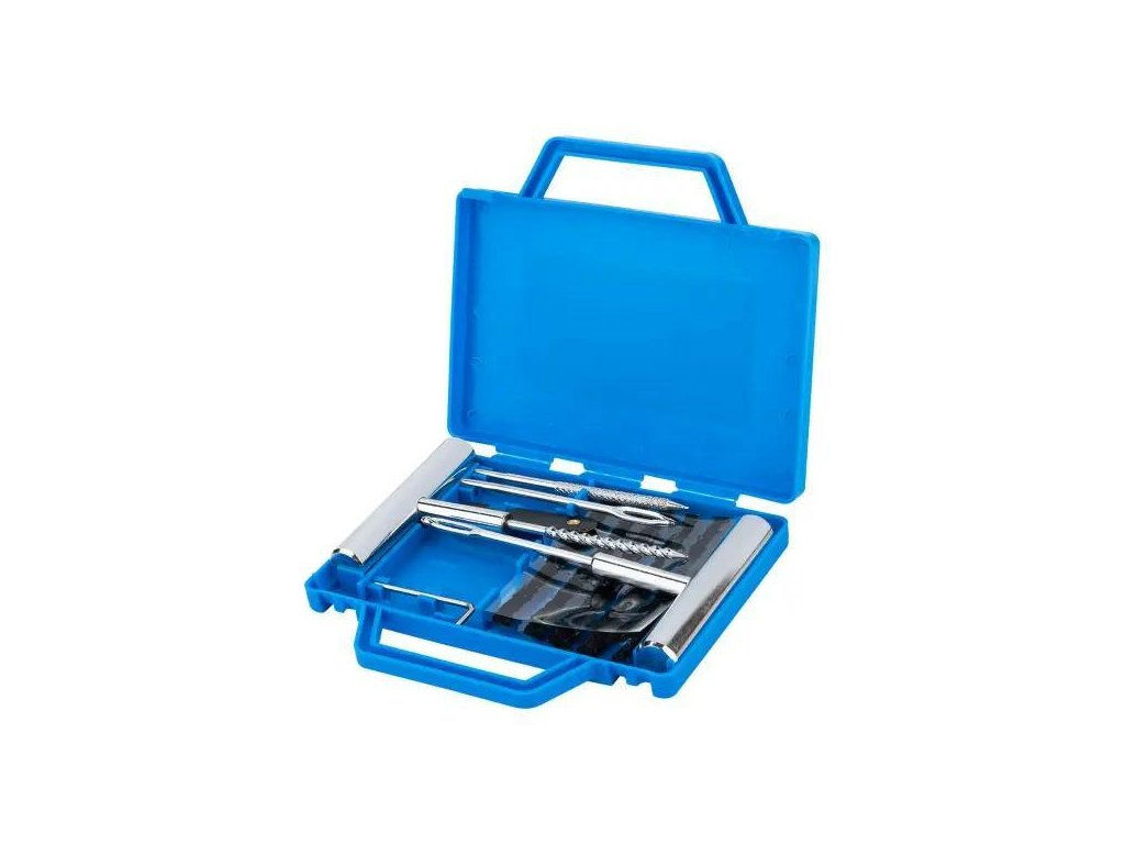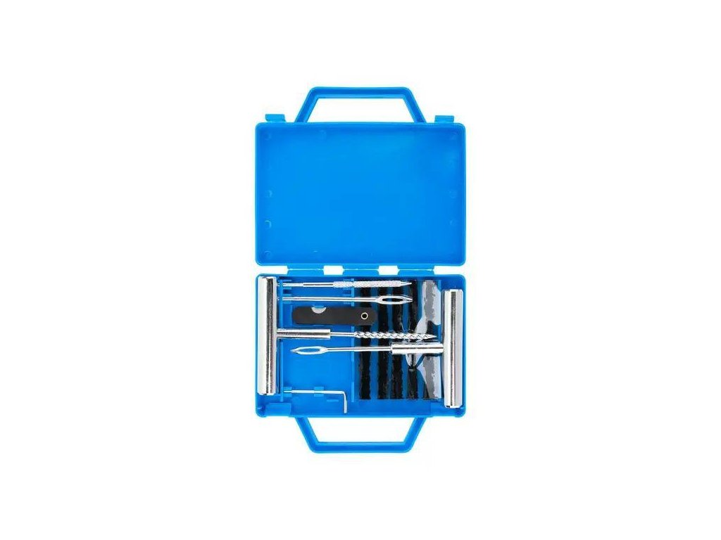 Kompletní sada 14 prvků – obsahuje všechna potřebná příslušenství na účinnou a rychlou opravu bezdušových pneumatik.