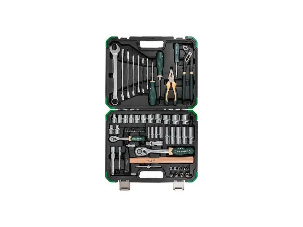 Sada nářadí Rockforce 74 el. je všestranný soubor určený pro dílenské, automobilové a domácí práce. Skládá se z kvalitních prvků vyrobených z chróm-vanadiové oceli (Cr-V), které zaručují trvanlivost, odolnost vůči opotřebení a spolehlivou práci po dlouhou dobu. Všechny nástroje jsou umístěny v pevném přepravním kufříku, zajišťujícím pořádek, snadný přístup a mobilitu.
