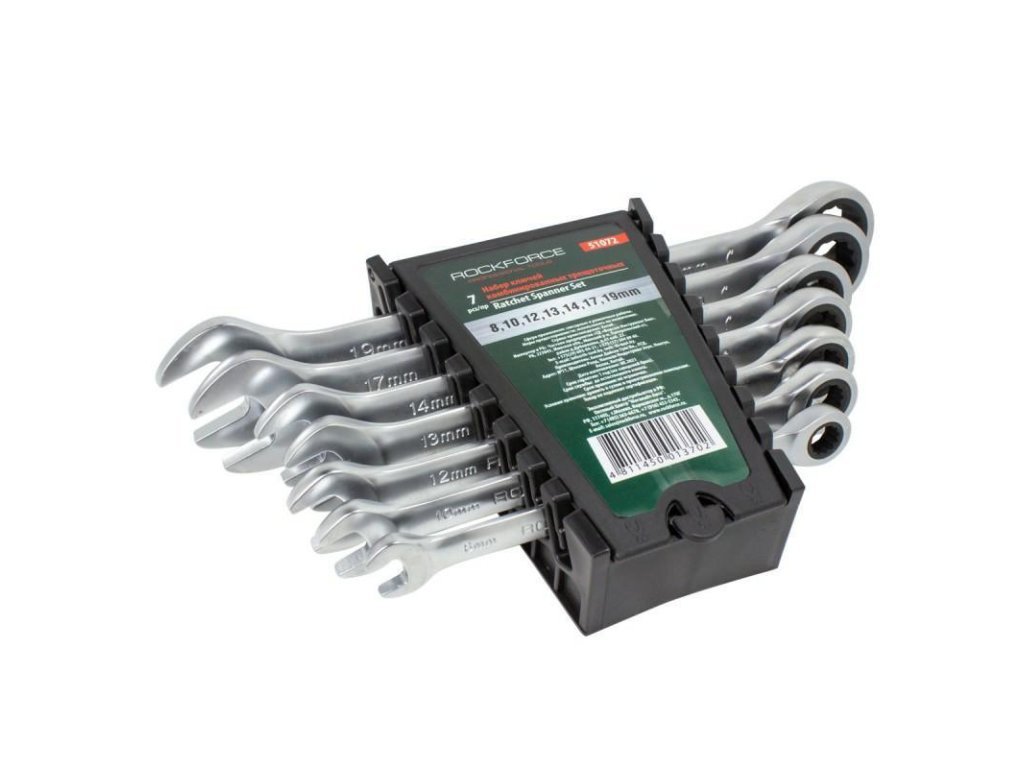 ROCKFORCE Sada plochých a očkových klíčů 7 KUSŮ 8-19 mm