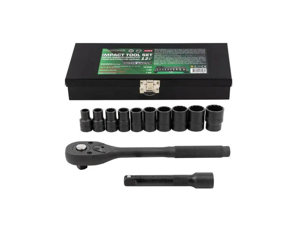 Rockforce 12-dílná sada nástrojů 1/2'' je určena pro ty, kteří očekávají spolehlivost, trvanlivost a komfort práce za všech dílenských podmínek. Sada obsahuje 10 dvanácthranných nástrčných klíčů, vysocepevnostní ráčnu, prodloužení 150 mm a praktický transportní kufřík, díky kterému je celá sada vždy po ruce a plně chráněna. Tento nástroj se uplatní jak v profesionálních automechanických servisech, tak i v domácích garážích.