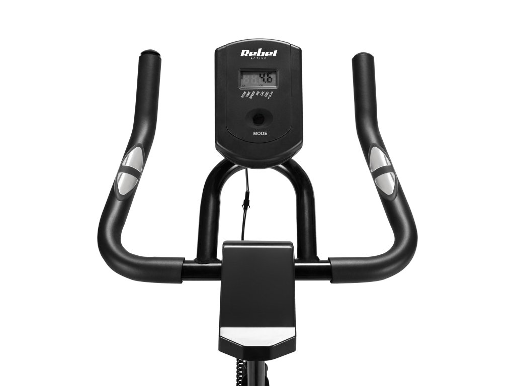 - LCD displej: Zobrazuje čas, vzdálenost, rychlost, spálené kalorie, puls a celkovou vzdálenost (ODO).