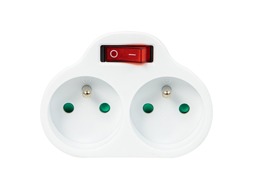 Rozdělovač s vypínačem 2x zásuvka bílý