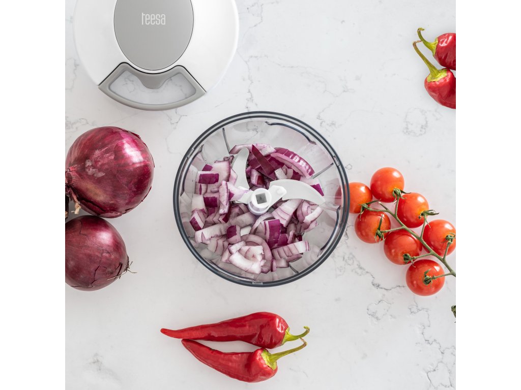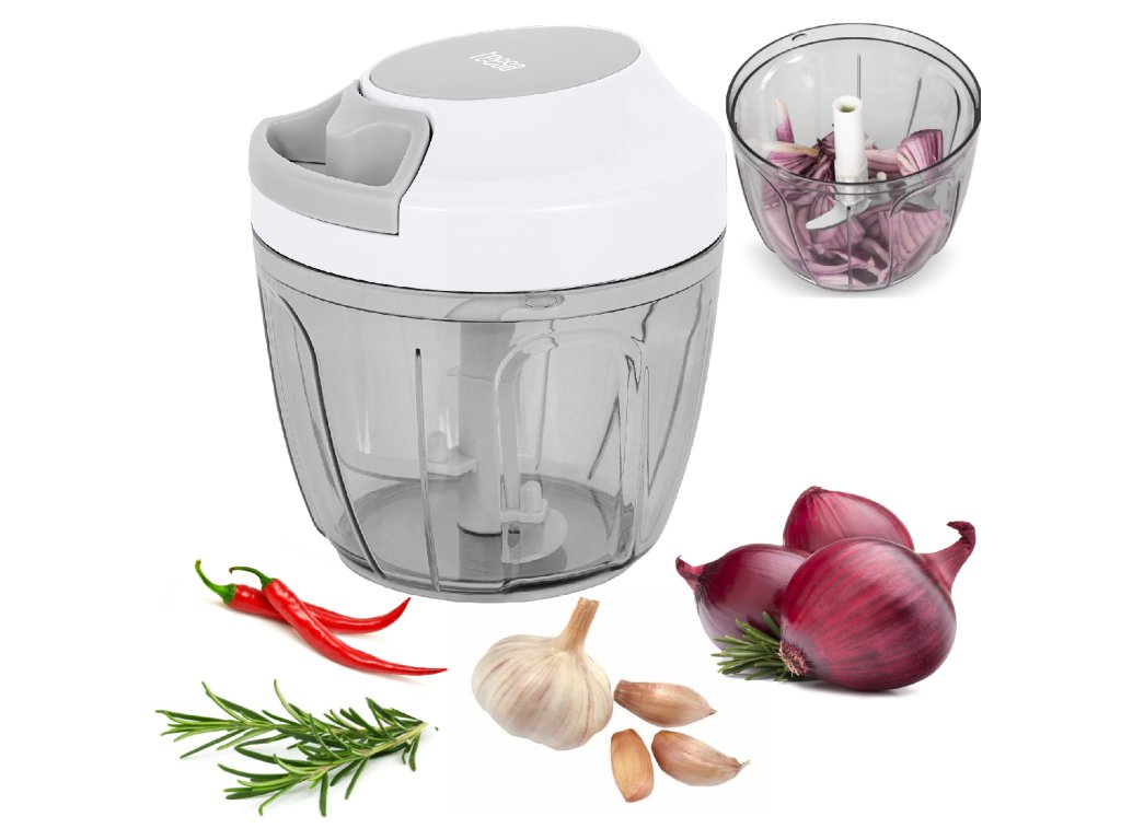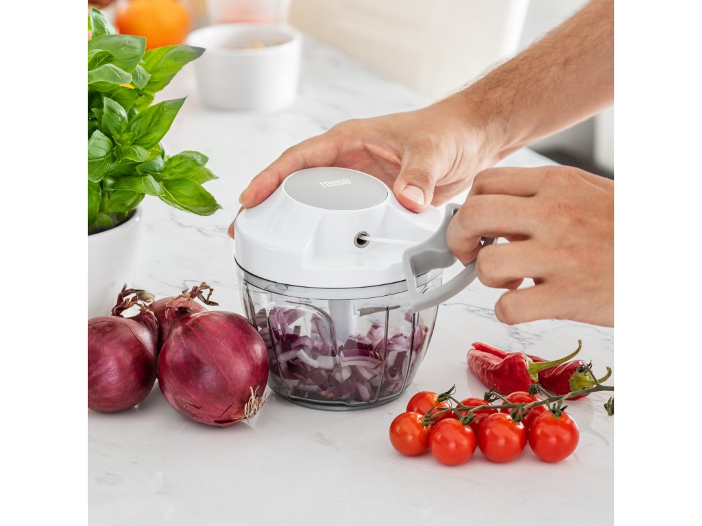 Potřebujete malé zařízení, které vám pomůže rychle připravit oblíbený salát nebo vaječnou pomazánku? Nebo se chystáte na kempování a potřebujete sekáček na cibuli? Vyberte si ruční mini drtič na zeleninu Teesa s objemem 650 ml, který s využitím tří různě rozmístěných čepelí snadno poseká cibuli, mrkev, ořechy či bylinky.