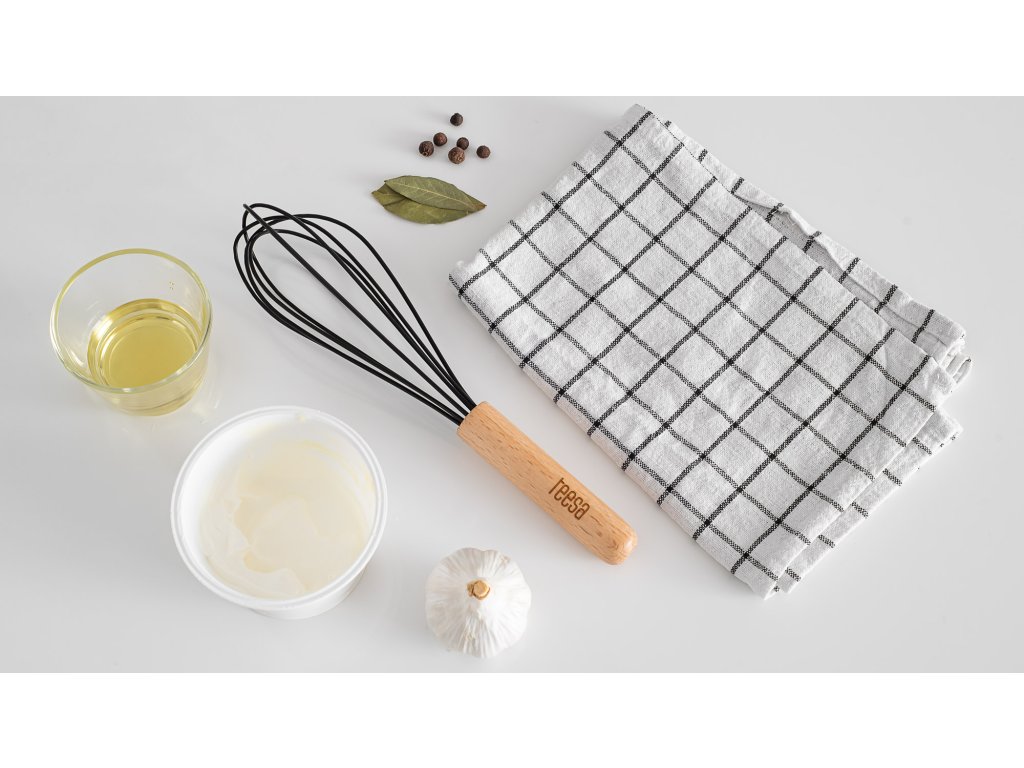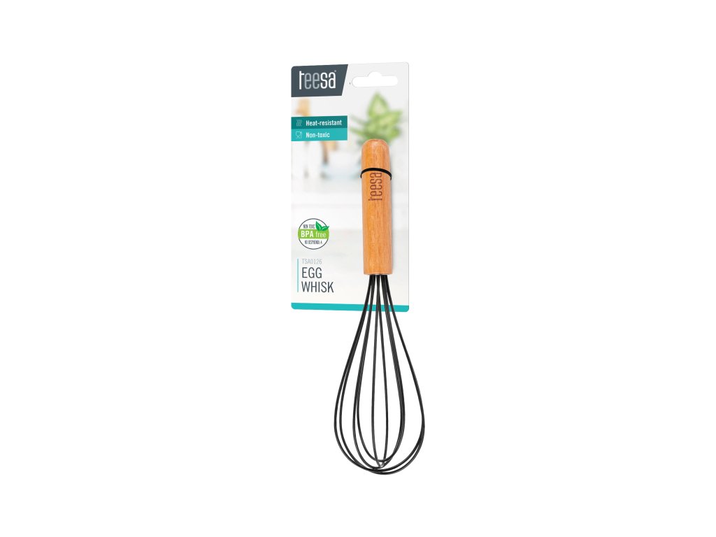 Šlehací metla na vejce patří do série kuchyňských nástrojů Teesa, kde byl použit silný, na teplotu odolný a pro styk s potravinami vhodný silikon.