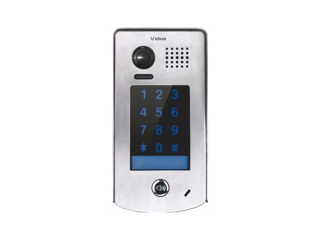 S1301D - Bránový panel DUO pro 1 domácnost - Vidos Jednoabonentová bránová stanice S1301D se zabudovaným kódovým zámkem, který umožňuje otevírání vstupu pomocí kódu. Vandaluvzdorný přední panel z broušené nerezové oceli je vybaven dotykovou, podsvícenou numerickou klávesnicí. Klávesnice zařízení slouží jako vstupní terminál a zároveň jako panel na programování zařízení. Velkou výhodou je možnost libovolného nastavení barvy podsvícení klávesnice a štítu během navazování spojení, hovoru a otevření vstupu (RGB). Noční LED podsvícení umožňuje pohodlné používání zařízení ve tmě. Bránový panel S1301D je vybaven kamerou s širokoúhlým objektivem s úhlem pohledu 105° (šířka). To umožňuje pohodlné používání na místech, kde je výška montáže značně omezena. Bránová stanice má zabudovaný konektor pro pohybový senzor (PIR), což umožňuje připojení takového senzoru a využívání funkce detekce pohybu (Funkce detekce je dostupná pouze s monitory M1021). Panel S1301D má schopnost ovládat dvě relé (druhé relé s(modulem B5). Maximální počet obsluhovaných vnitřních zařízení – 12 (monitory / unifóny). Adresování vnitřních spojení mezi monitory. Parametry technické: Rozlišení obrazu: 2 Mpx Typ obrazu: Digitální Tlačítka: 1 Výstupy: 1 x relé Noční podsvícení: ANO Úhel pohledu: 170° Kódový zámek: ANO Ochrana: IP54, vandaluvzdorná Montáž zapuštěná: ANO Napájení: 24 VDC Rozměry: 182 x 93 x 44 mm Technická specifikace: S1301D Napájení 24V DC Napájení elektrického úchytu 12V DC max. 250mA Výstupy relé 1 nebo 2 s modulem B5 Kabeláž 2 vodiče bez polarizace Maximální zatížení kontaktů relé 6A Senzor kamery CMOS 1/2,7" Rozlišení 2Mpx Úhel pohledu objektivu 170° horizontálně Interkom Ano Spotřeba v pohotovostním režimu 0,96W Spotřeba v pracovním režimu 3,84W Způsob montáže Nástěnný Pracovní teploty -20°C ~+55°C Stupeň ochrany IP54 Rozměry 182x93x44mm Záruka 36 měsícůDoplňkové parametry