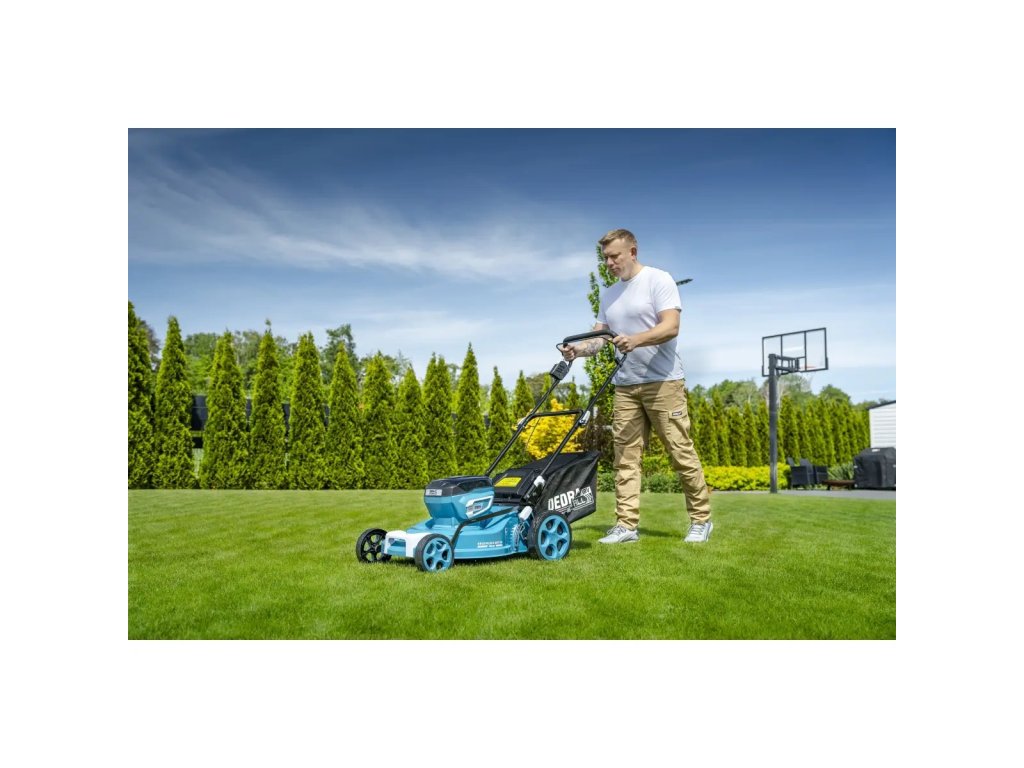 Aku sekačka 18V, DEDRA SAS+ALL DED6997X Dva akumulátory DEDRA SAS+ALL DED7035 o kapacitě 5 Ah každý Nabíječka na dva akumulátory DEDRA SAS+ALL DED7038VAku sekačka 2x18V, DEDRA SAS+ALL DED6997X - efektivní a pohodlné sečení