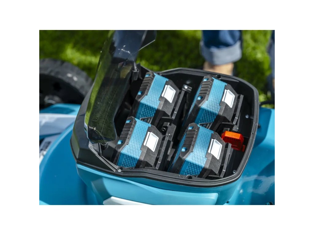 Sekačka je vybavena slotem pro čtyři akumulátory, což umožňuje dlouhé sečení bez nutnosti přestávek na nabíjení. Systém automatického přepínání mezi dvojicemi akumulátorů umožňuje nepřetržitou práci - když se jedna dvojice vybije, zařízení se automaticky přepne na další. Toto řešení umožňuje nepřerušovanou práci delší dobu, čímž eliminuje nutnost ručního přepínání akumulátorů nebo čekání na jejich nabití, což rozhodně zvyšuje efektivitu a pohodlí používání.