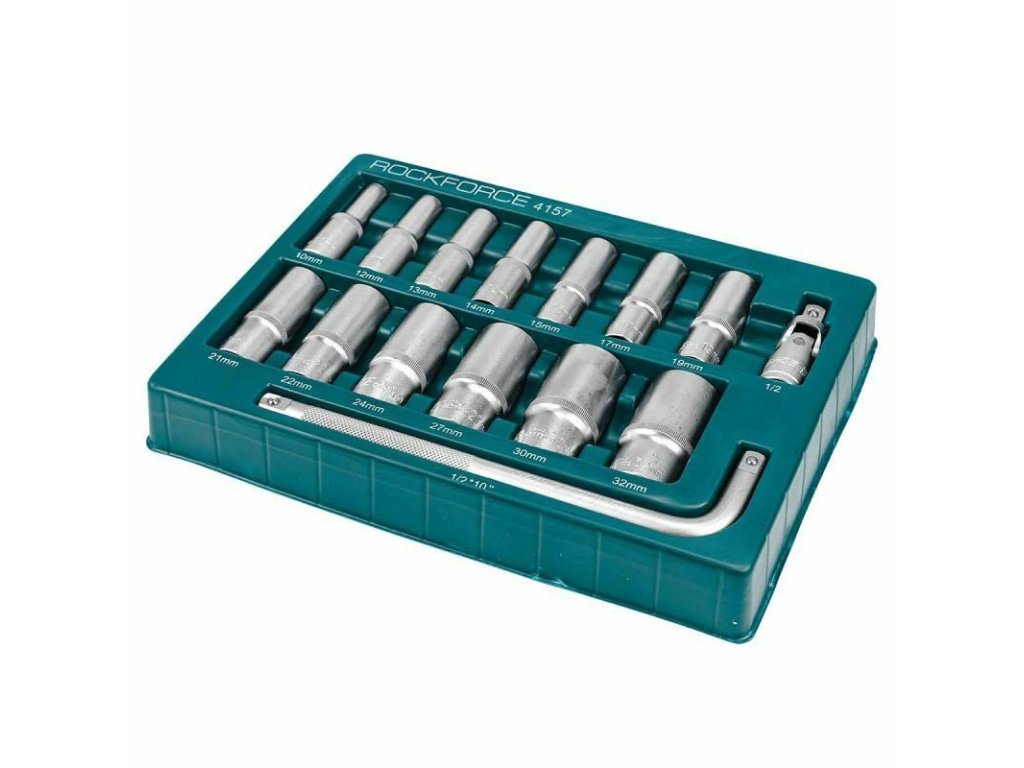 Sada hlubokých dlouhých šestihranných nástrčných klíčů 10-32 mm, 15 ks s ráčnou