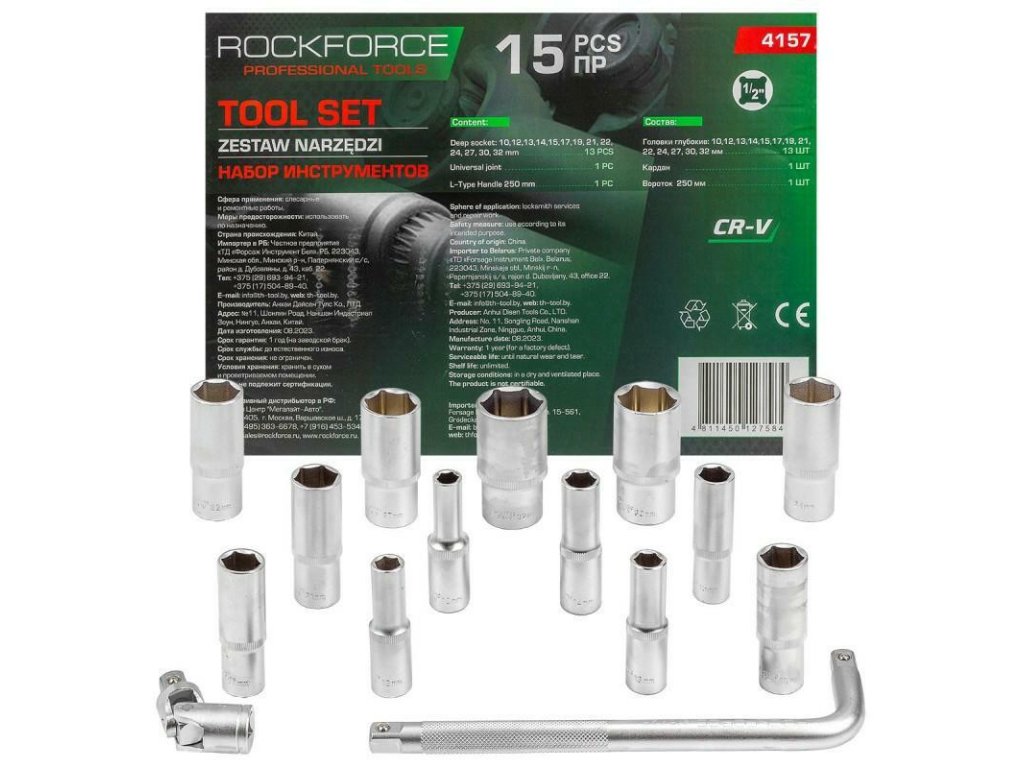 Sada obsahuje 13 nástavců různých velikostí vyrobených z chrom-vanadové oceli, což zaručuje jejich vysokou pevnost, trvanlivost a spolehlivost při použití.