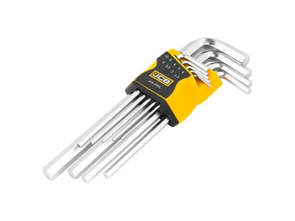 Sada imbusových klíčů JCB dlouhých 9 kusů 1,5-10mm typu L Cr-V HEX