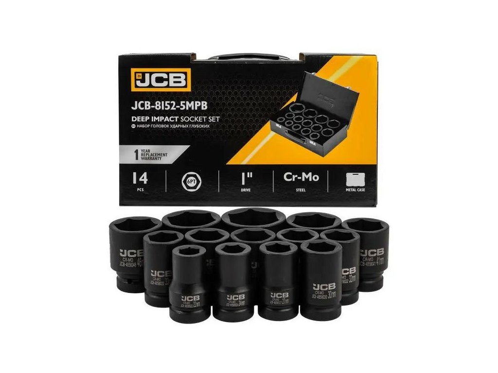 Sada JCB rázových hlubokých nástrčných klíčů 1" Cr-Mo 6-hranných 14 dílná