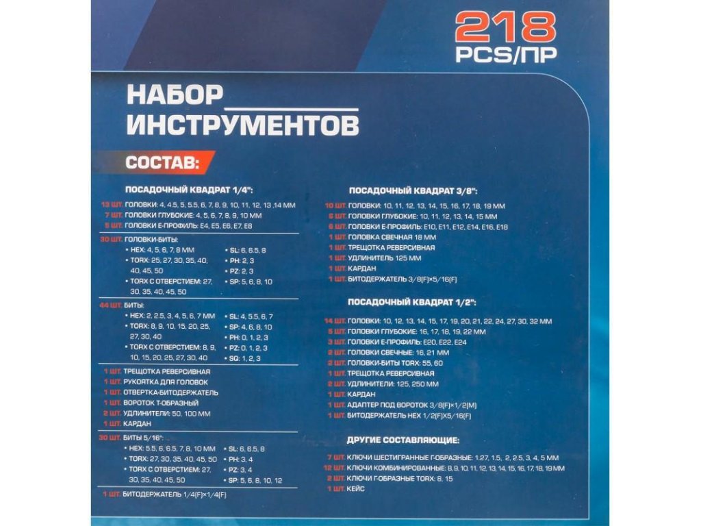 Sada kompletních nástrojů s nástavci, bitů, ráčnových klíčů 218 ks v kufru