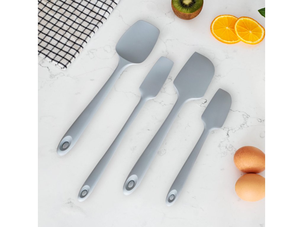 Pokud svůj set ještě nevlastníte, určitě si prohlédněte silikonové stěrky Teesa. V sadě se nachází 4 kusy různých rozměrů a použití. Stěrky jsou netoxické, bez zápachu a mají nepřilnavý povrch – jsou ideální pro všechny kuchyňské práce. Stojí za zmínku, že silikonové, jemné hrany zajistí, že s těmito nástroji určitě nepoškrábete hrnce ani pánve.