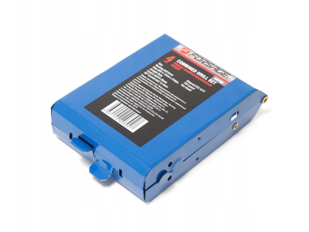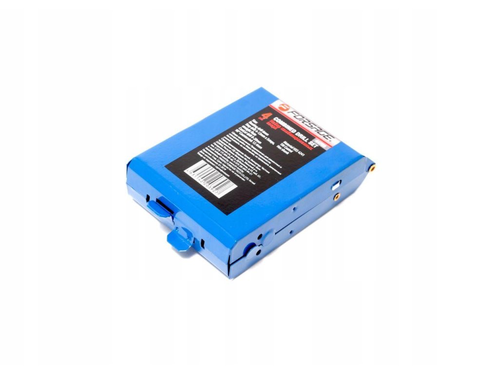 Sada univerzálních vrtáků značky Forsage v kovovém boxu, obsahující: