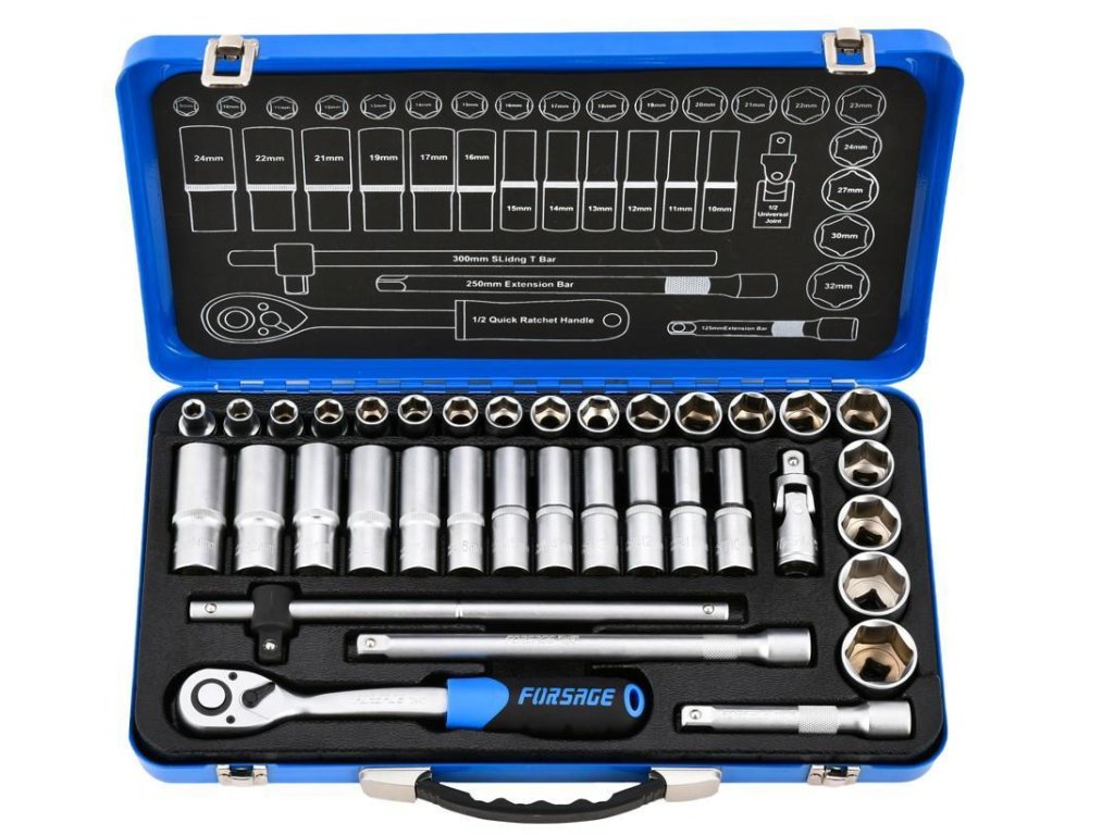 Sada nářadí 1/2" 36 ks 8-32 mm 6hranné v kufru