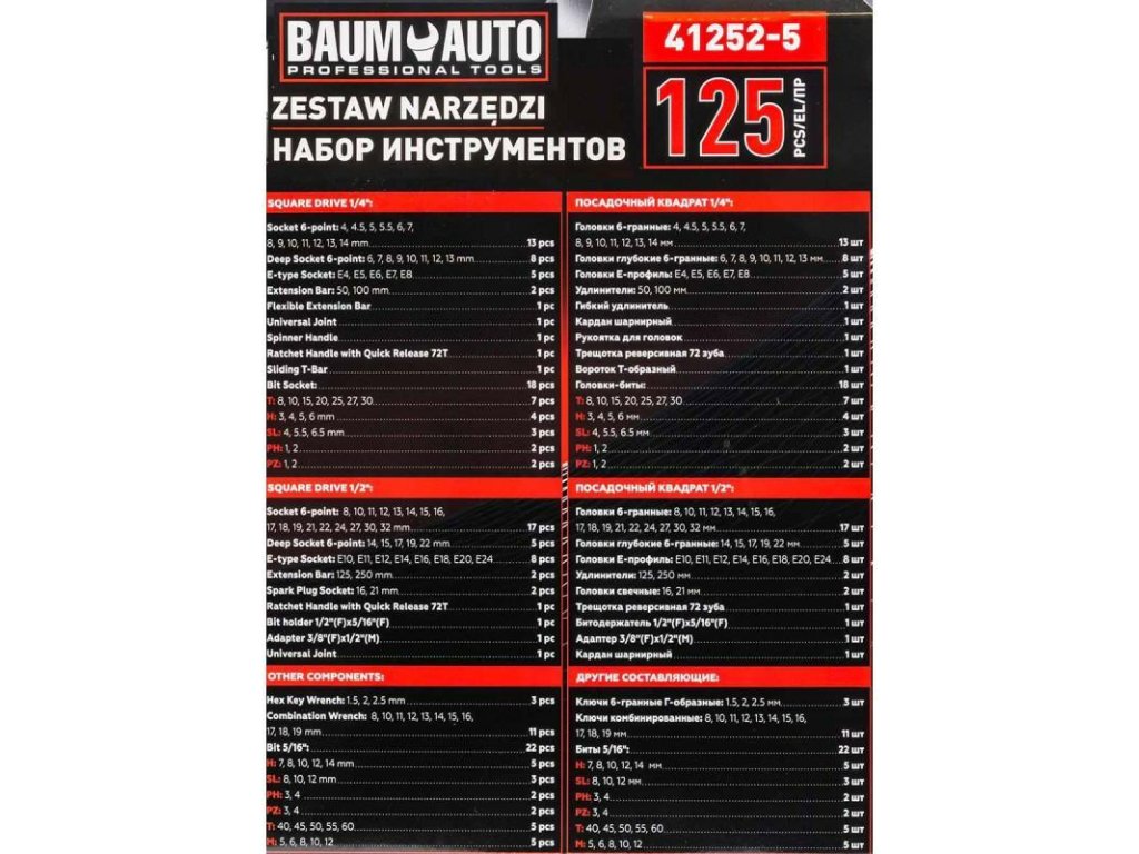 Sada nářadí 1/2" a 1/4" 125 ks.