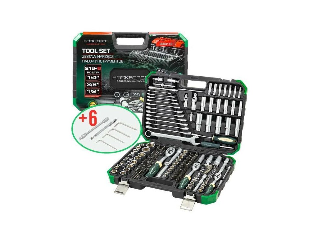 Sada nářadí 216+6 ks 1/4", 3/8"
