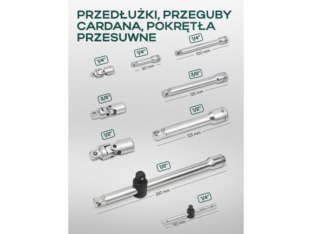 Sada nářadí 216ks 1/4" 3/8" 1/2"