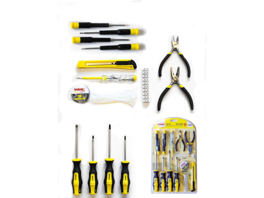 Funkční sada obsahuje nejpotřebnější nářadí nezbytné v každé domácnosti nebo dílně.