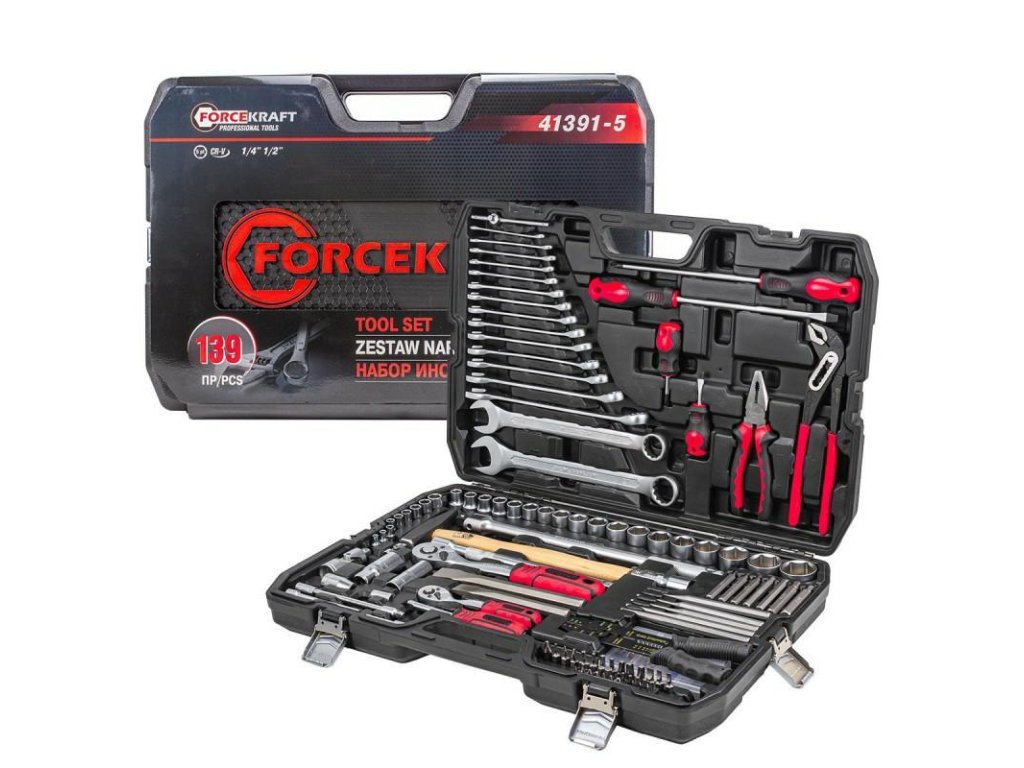 Sada nářadí bitů a nástavců s ráčnou a klíči 1/4" a 1/2" 139 ks v kufříku