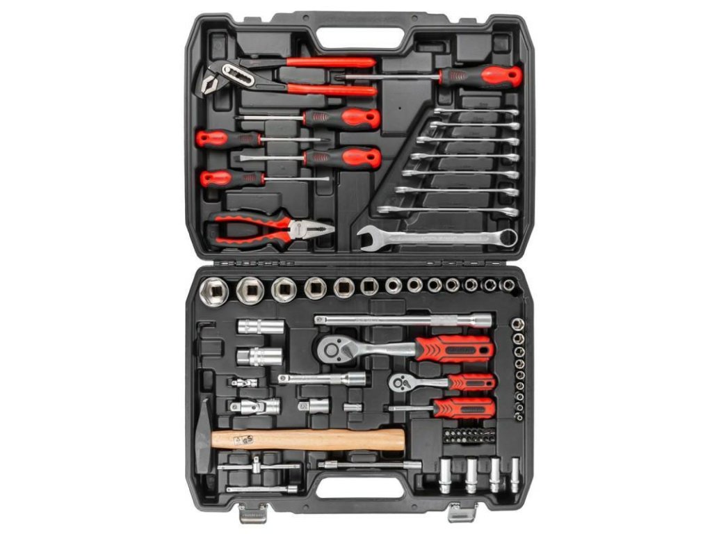 Sada nástrojů je uložena v kufříku, což usnadňuje jejich uložení, přepravu a organizaci. Díky tomu může uživatel mít jistotu, že všechny nástroje jsou vždy na svém místě a připravené k použití.