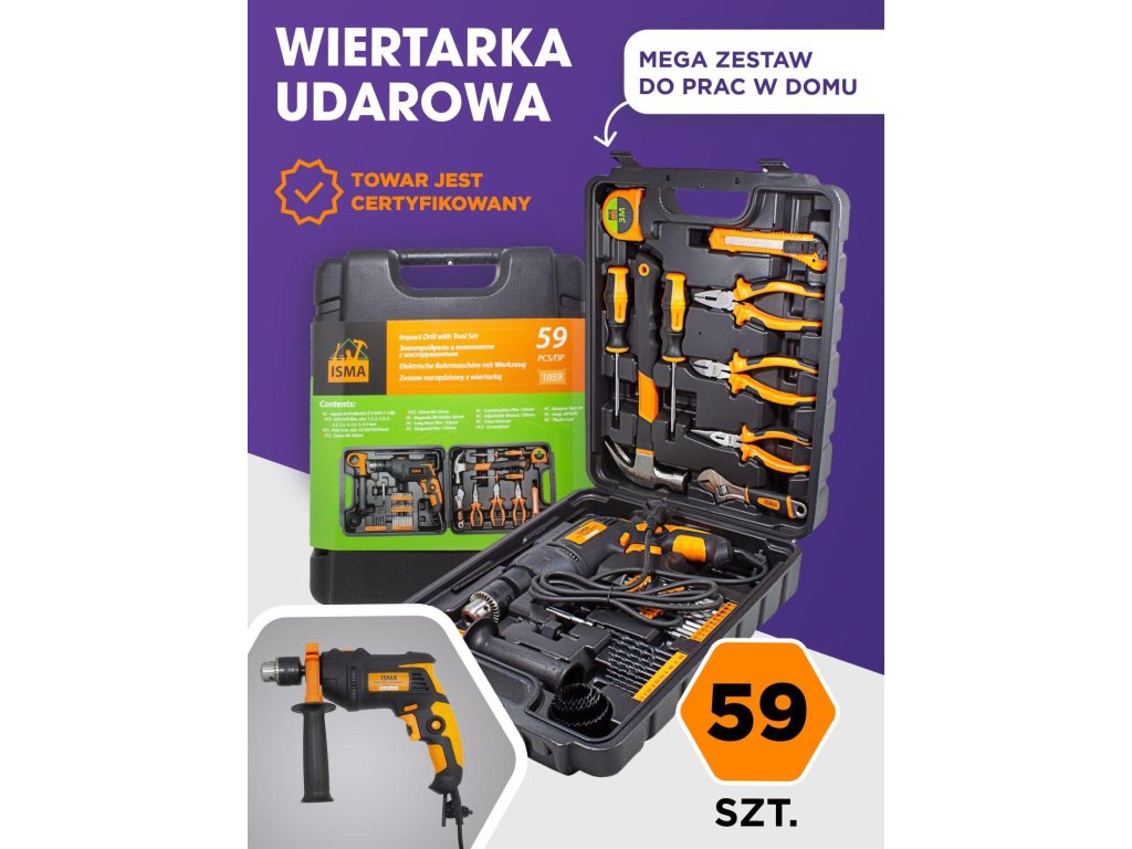 SADA NÁSTROJŮ S VŔTAČKOU A BITY 59 KS